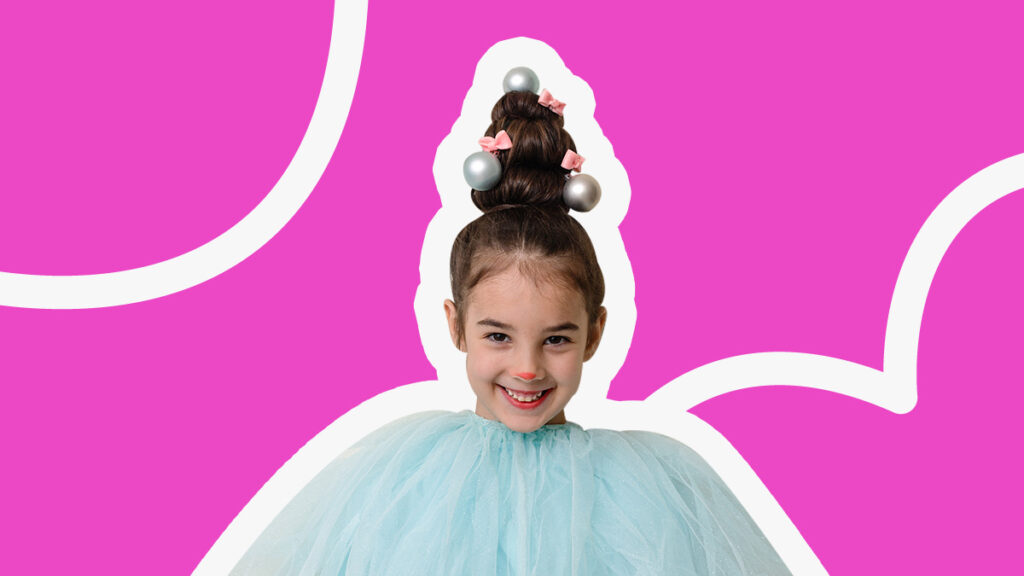 Decore o cabelo com mini bolas, pisca-piscas (seguros e sem fio) e glitter.