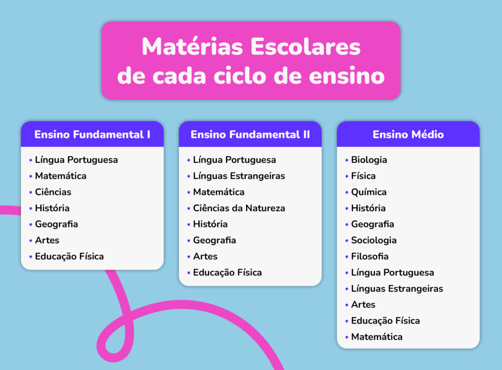 O currículo escolar é organizado em áreas de conhecimento que se aprofundam à medida que o aluno avança nos ciclos de ensino.